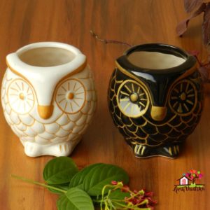 Be the first to review “Black and White HD Owl Ceramic Planters with Gold Stripes (Set of 2)” Cancel reply